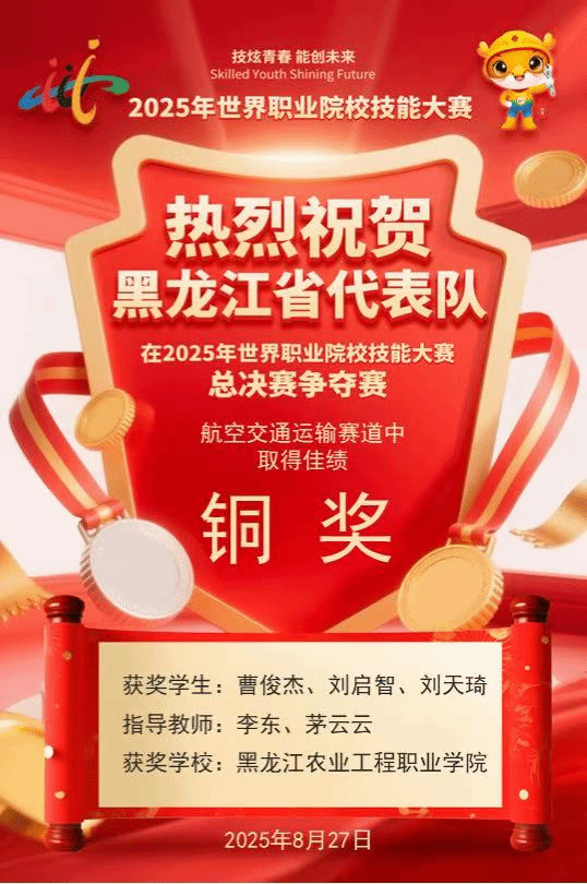 8月27日,2025年世界职业院校技能大赛总决赛航空交通运输赛道比赛在成都航空职业技术大学落下帷幕。万象城农业装备学院无人机应用技术专业24-1班刘启智、曹俊和23-1班刘天琦三位同学,在李东、茅云云两位指导教师的带领下,凭借过硬的专业技能与稳定的赛场发挥斩获铜奖。这是我省在该赛道上首次收获奖牌,实现了历史性的突破。