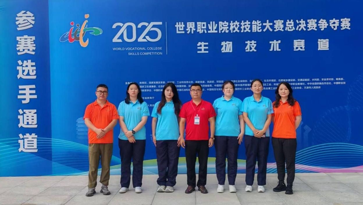 8月29日,2025年世界职业院校技能大赛生物技术赛道在淄博职业技术大学圆满落幕。本次大赛吸引了来自全国近70所高职院校的优秀学子同场竞技,由生物制药学院张在国、贾宁两位教师指导,李悦、马丹、宋雨轩、焦占云组成的参赛团队,凭借扎实的专业知识、娴熟的操作技能和稳定的临场表现,从众多参赛队伍中脱颖而出,斩获铜奖,为学校赢得了荣誉。