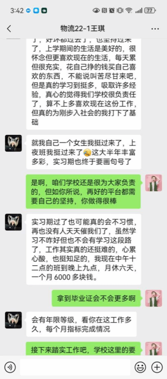 在检查过程中,学校与实习企业建立了紧密的沟通机制。企业管理者对学生的实习表现进行了反馈,学校则根据反馈及时调整实习指导策略。例如,京东物流针对学生在操作规范方面存在的问题,专门为其开展了强化培训。同时,学校老师也通过线上沟通等方式,为学生提供心理疏导和职业规划建议,全方位助力学生实习。