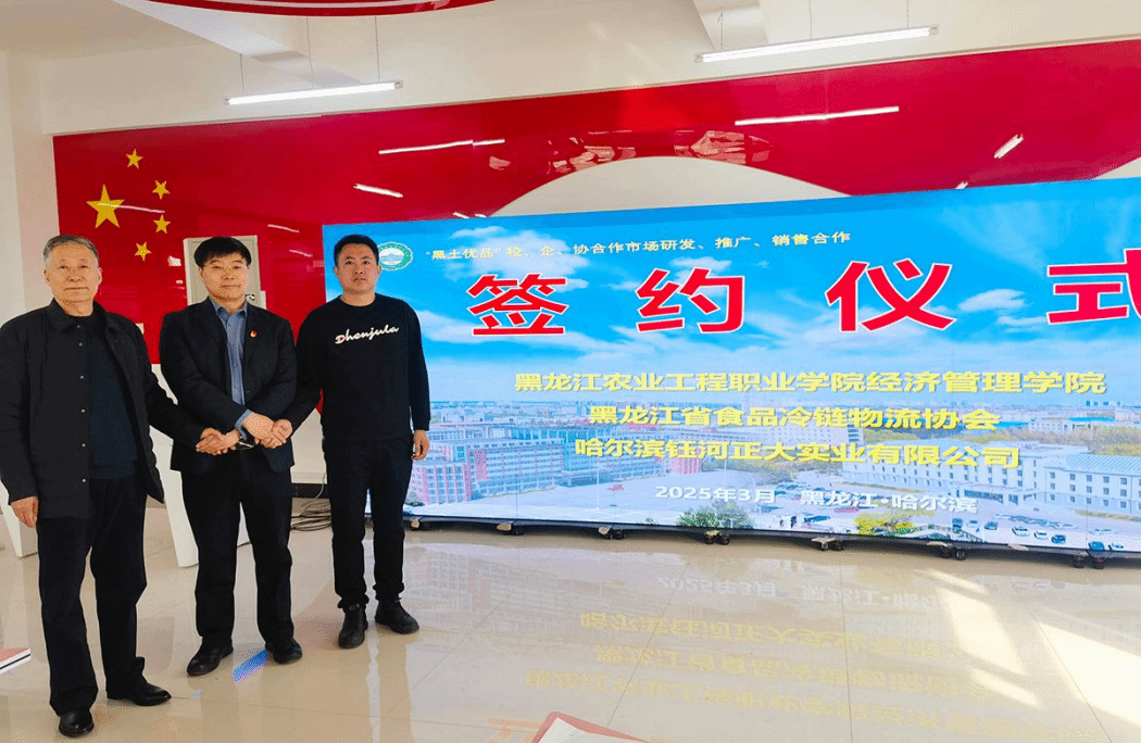 会上,经济管理分院党总支书记侯彦明、哈尔滨钰河正大实业有限公司总经理李长春、黑龙江省食品冷链物流协会会长王玉合共同签署《“黑土优品”校企协合作市场研发、推广、销售框架协议》。根据协议,三方将围绕二大方向展开合作。一是在产品研发创新方面,依托学院数字经济、市场营销等专业师资,联合企业开展黑土特色农产品的标准化研发与品牌升级;二是在营销生态共建方面,校企联合开设“黑土优品”营销推广、电商直播实训项目,培育兼具理论与实践能力的现代营销人才。三方将围绕签约内容,以“黑土优品”为起点,共同构建“教育链—产业链—创新链”融合发展的生态闭环,为龙江乡村振兴与产业振兴提供人才与智力支撑。