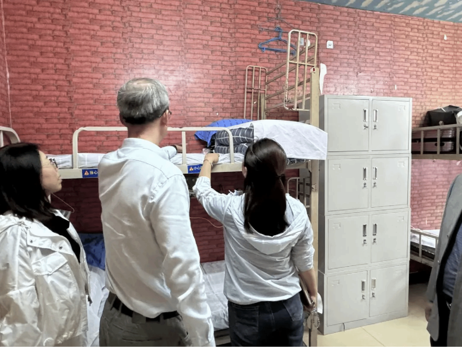 走访过程中,于院长一行检阅了经管分院2024级新生一营四个连的军训情况,在检查寝室时关切地询问寝室通风、用电、采光等关乎学生住宿条件等切实状况。关怀备至,以心暖新。让2024级新生感受到学院浓浓的关爱,为即将开启的大学旅程注入了的动力和信心。