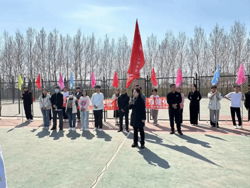 经济管理学院学生党支部高月书记在开幕式上致词,强调各支参赛队员要本着“我运动,我健康;我运动,我快乐”的理念,发扬“友谊第一、比赛第二”的体育精神,赛出风格、赛出水平,希望通过这次比赛,能够促进我们经管学院各专业之间的交流与合作,增进同学们之间的感情和友谊,同时也希望同学们能够文明观赛,为运动员们加油鼓劲,共同营造一个公平、公正、和谐的比赛氛围。