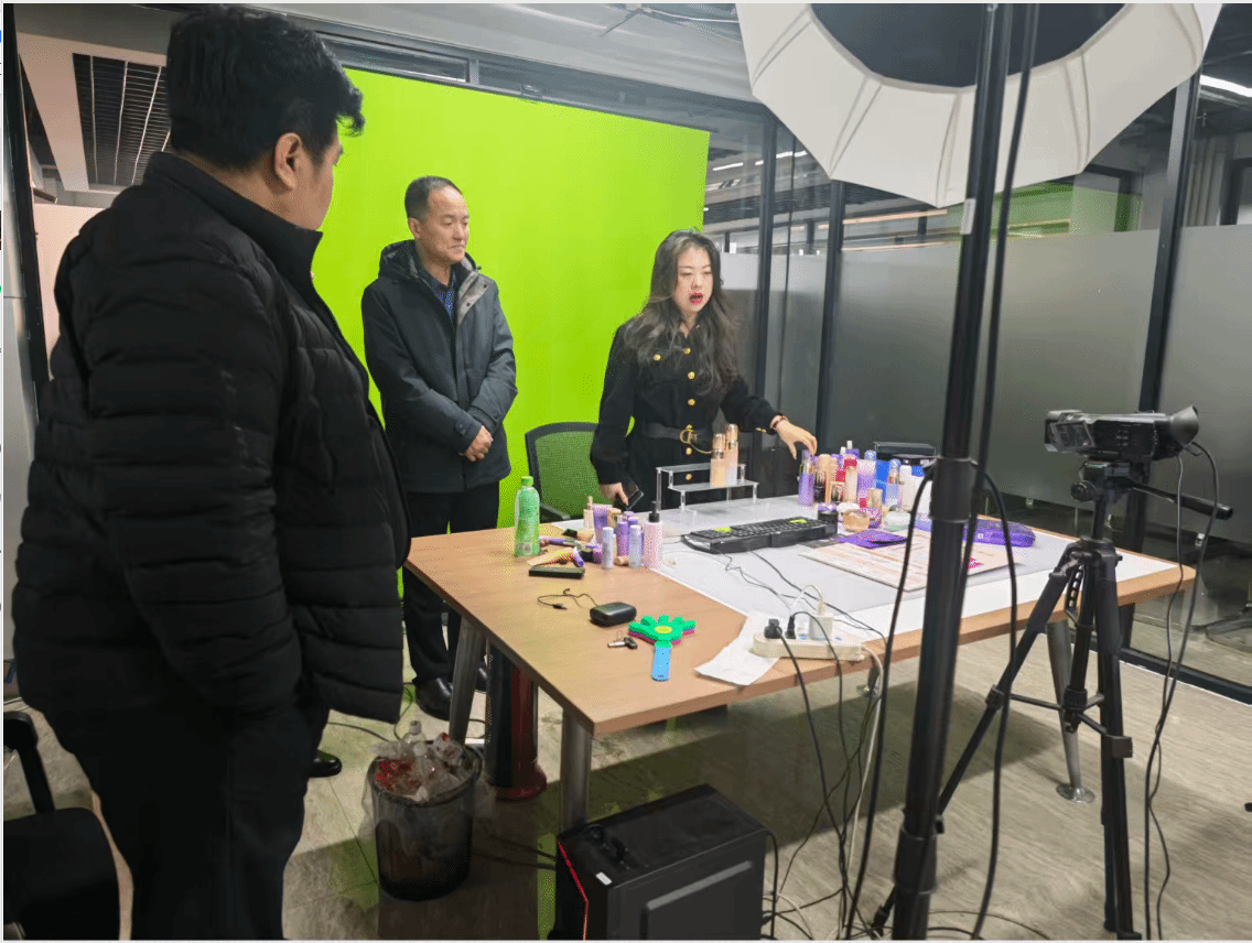 科创社区负责人孙长园书记对学院一行的到来表示热烈欢迎,并围绕社区发展概况、产业布局特色及服务体系建设等方面进行了系统介绍。科创社区成立于2022年,辖区面积达2.2平方公里,集聚了多家注册企业,形成了多元共生的产业生态。在社区负责人的陪同下,学院一行重点参观了社区党建工作服务站、智慧新区人才驿站及数字贸易产业园区,还走进直播室、剪裁室等特色功能空间,近距离感受社区在企业服务、人才保障、产业孵化等方面的创新实践。谭雨来书记对社区整合资源,搭建创业服务平台的举措表示赞赏,认为这些功能空间不仅为辖区企业提供了实用服务,也为学院相关专业学生提供了绝佳的实践场景。