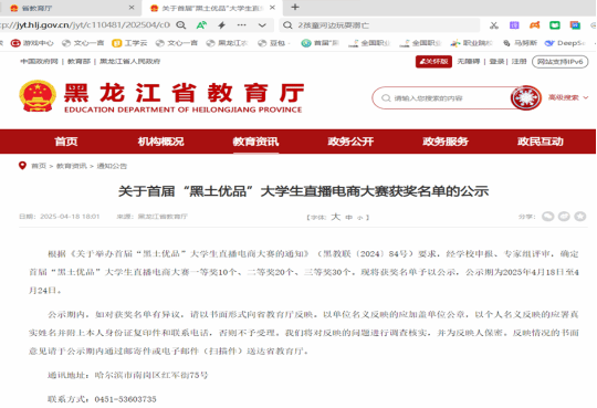 据悉,为深入贯彻落实习近平总书记视察黑龙江期间重要讲话重要指示精神,贯彻落实全国教育大会精神和省委、省政府关于大力发展品牌农业的部署,加强创新人才自主培养,培育新质生产力发展新动能,助力“黑土优品”品牌建设,省教育厅联合省农业农村厅、省网信办、团省委等单位,共同举办首届“黑土优品”大学生直播电商大赛。