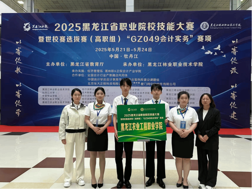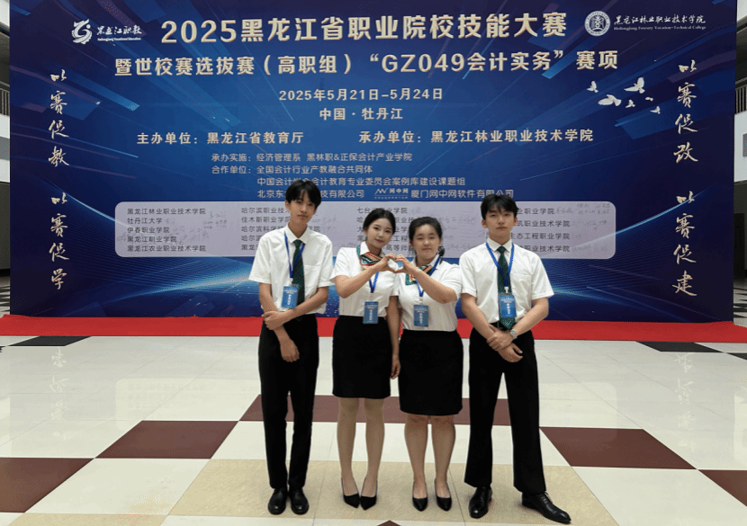 一场智慧的较量,一次技能的盛宴。5月24日,由黑龙江省教育厅主办,黑龙江林业职业技术学院承办的2025年黑龙江省职业院校技能大赛暨世校赛选拔赛会计实务赛项圆满落幕。在这场全省19所职业院校共同参与的竞技中,由张雨迪、王宇老师指导的大数据与会计专业王鑫、王惠、宋佳佳、孙旭楠四名学生组成的参赛团队,以创新为翼,以实力为桨,在独特的“三自主”赛制下,以小组第二的成绩斩获二等奖。