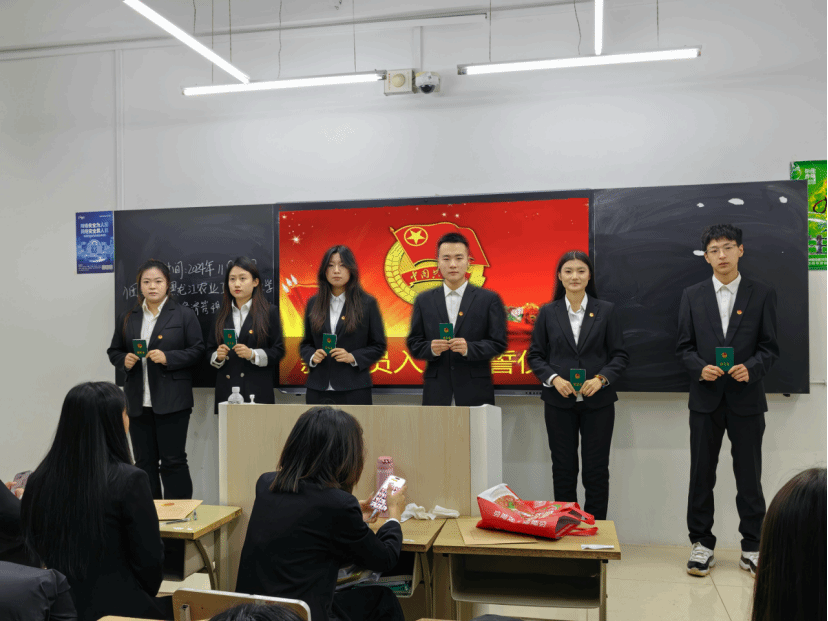 为加强共青团组织队伍建设,增强共青团员的组织荣誉感,凝聚团组织活力,引导和激励广大青年感党恩、听党话、跟党走,经济管理学院于12月17日在教学楼412教室开展新发展团员入团仪式。