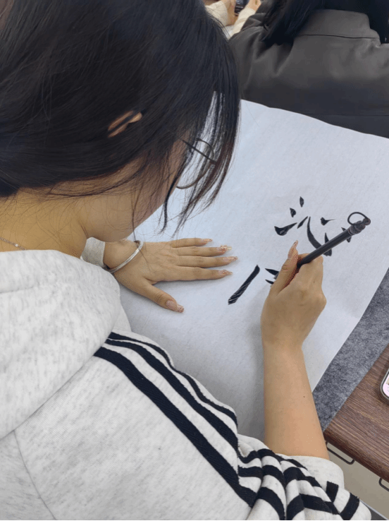 “翰墨抒怀”书法体验,将文化传承与情感抒发巧妙结合。同学们铺开宣纸,研墨提笔,或专注临摹红色经典诗词,或自由书写心中的家国情怀。“青春向党”、“强国有我”、“赤子之心”……一幅幅或遒劲有力、或娟秀工整的书法作品在笔尖流淌。墨香萦绕间,同学们不仅体验了书法艺术的宁静致远,更在一笔一划的书写中,沉淀思想,将炽热的爱国情感与青春志向凝练于纸上。参与活动同学们表示,平时课业压力大,静心练字是一种很好的解压方式。写“不忘初心”时,内心特别平静,也充满力量,这比单纯说教更能让人记住那份责任。