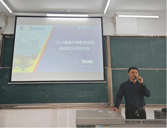 为强化实践育人、护航实习征程,6月4日下午,我院电子商务专业群(含电子商务专业、市场营销专业)2023级全体学生齐聚教学楼305教室,隆重举行岗位实习动员大会。专业群实习指导教师悉数出席,会议由电子商务专业群带头人田英伟老师主持。