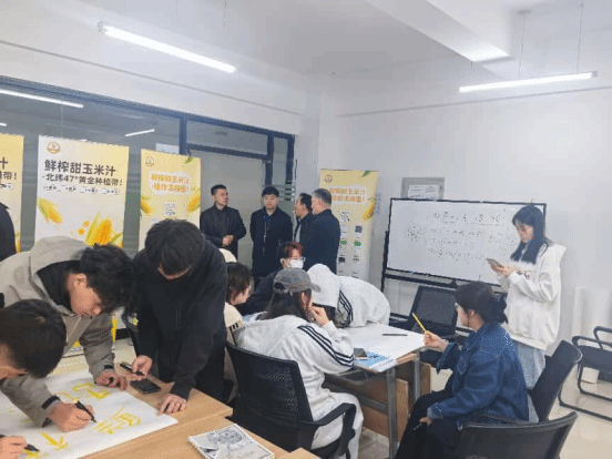 本次活动由电子商务市场营销专业群负责人田英伟整体协调,市场营销专业教师梅鹏具体负责,阚丽妍、刘金峰两位教师配合执行。校企双方高度重视本次活动,经济管理学院党总支书记侯彦明,哈尔滨钰河正大实业有限公司董事长王钰合亲临活动现场观摩指导。活动邀请哈尔滨钰河正大实业有限公司工作人员走进课堂,讲解示范销售流程。由梅鹏老师向学生解读实施方案,并组织学生手绘POP海报,随后,学生团队以企业“准员工”身份在校内开展玉米汁销售实践活动。