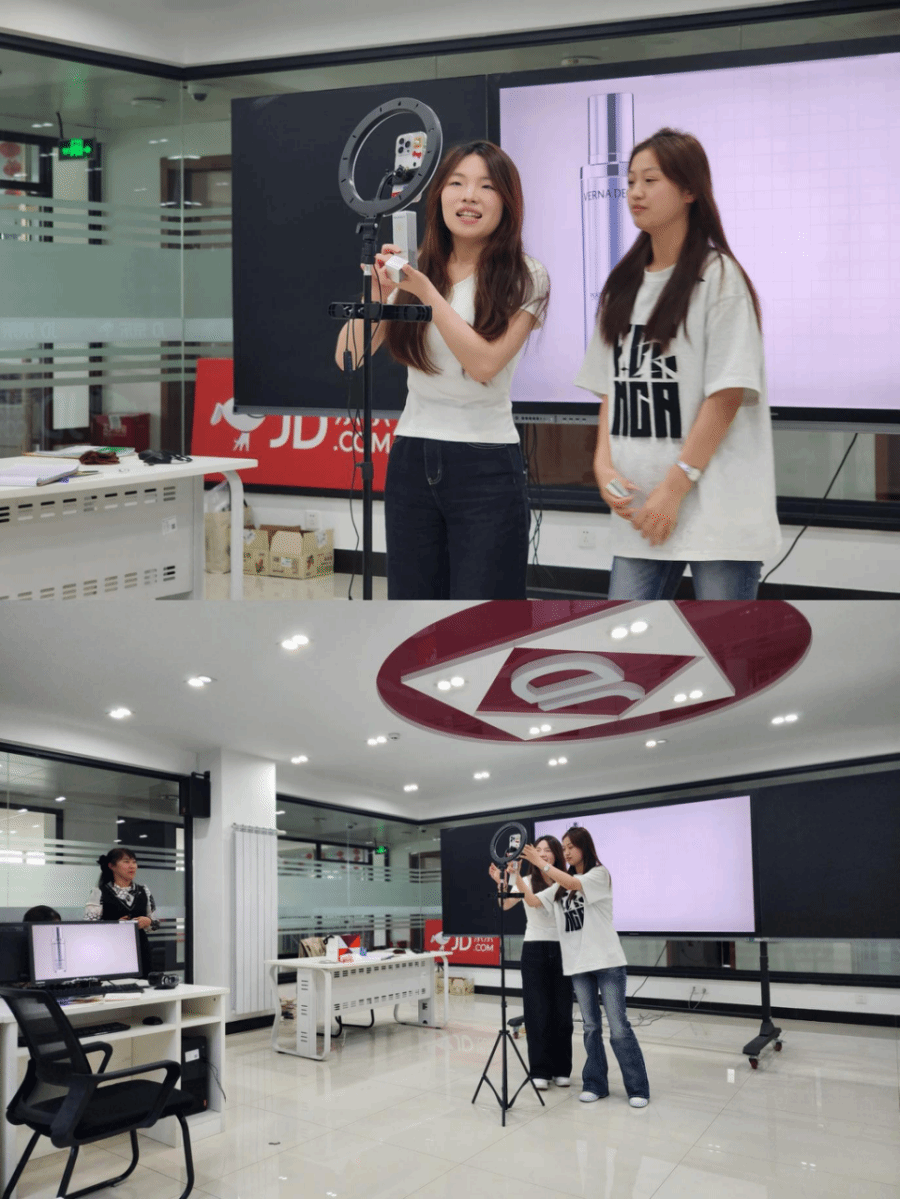 为了检验学生的学习成果,课程最后安排了实践环节,以一款精粹水为例,学生现场展示直播话术。学生们积极参与,运用所学知识,从产品的功效、成分、适用肤质、优惠力度等方面进行介绍,并通过互动环节解答虚拟观众的疑惑,尝试引导购买。
