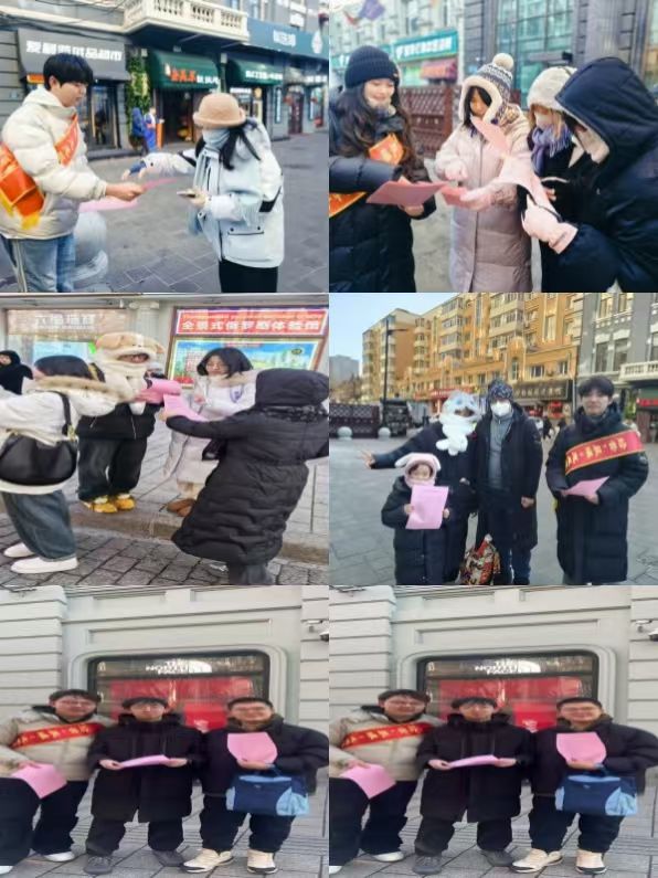 为迎接第九届亚冬会,向亚洲乃至世界展示哈尔滨的热情与友好。经济管理学院“晨曦”大学生志愿服务队的师生们于1月6日来到中央大街、大安社区、上红社区等地开展“助力亚冬会,文明我先行”志愿活动。