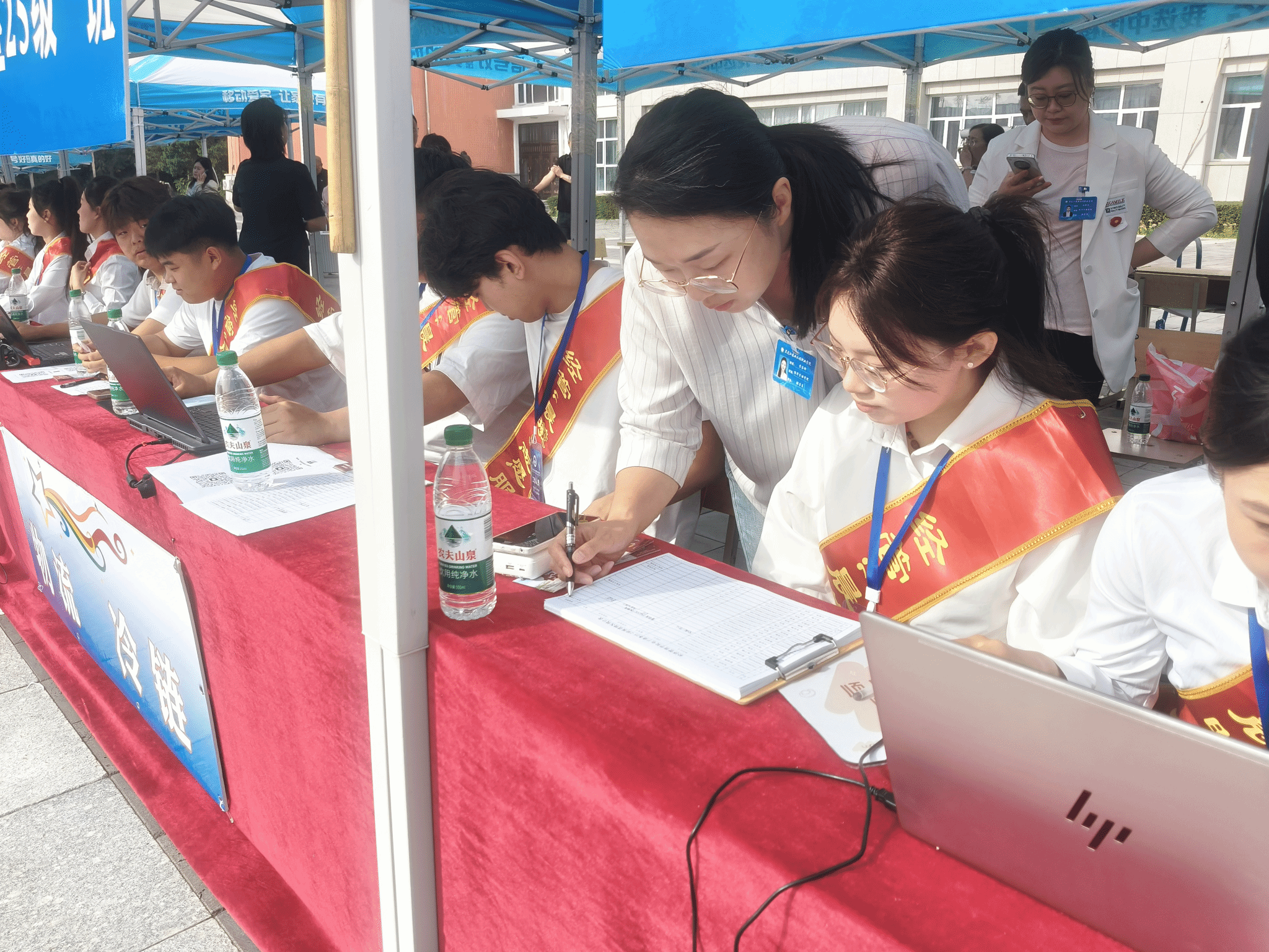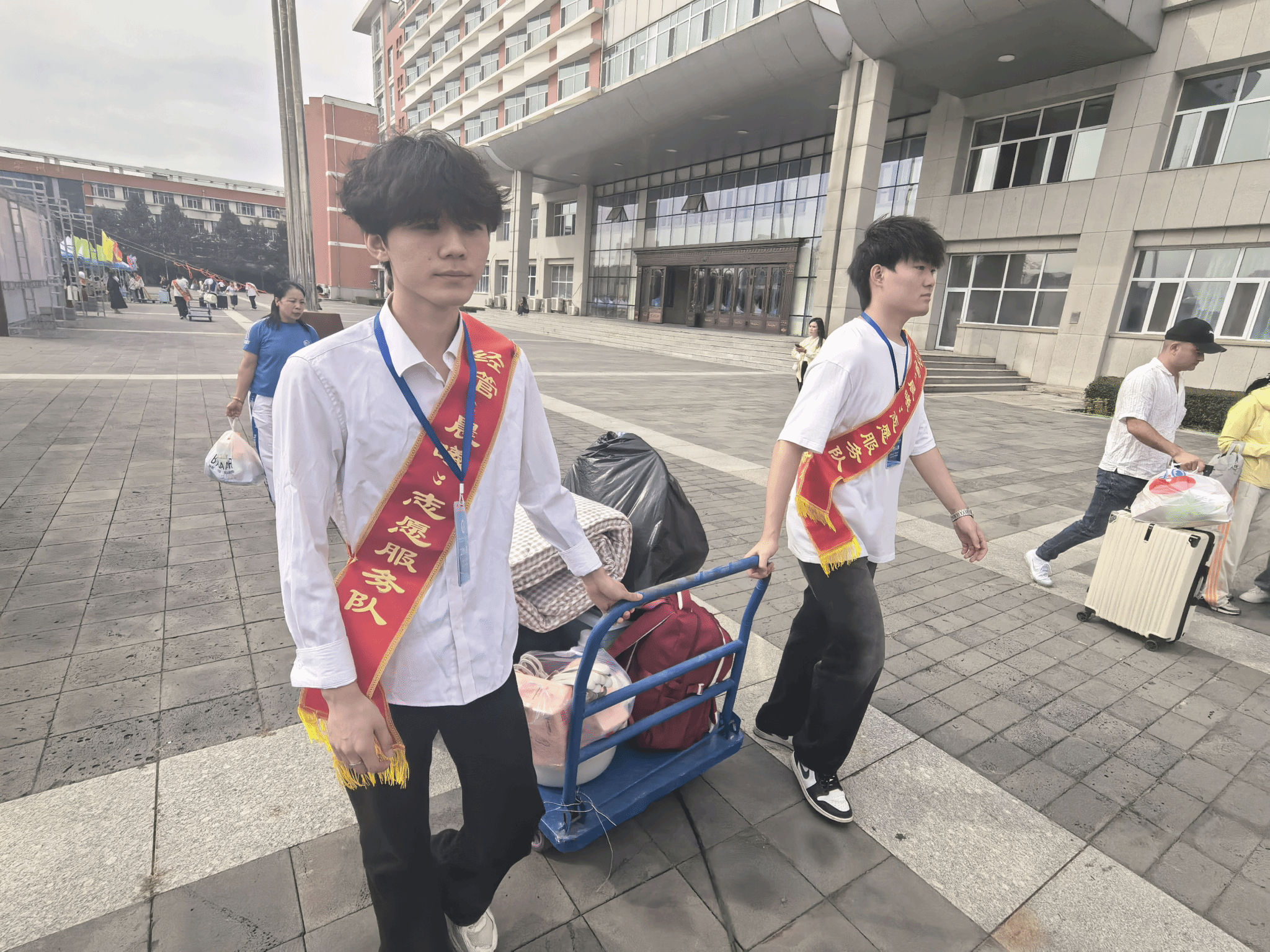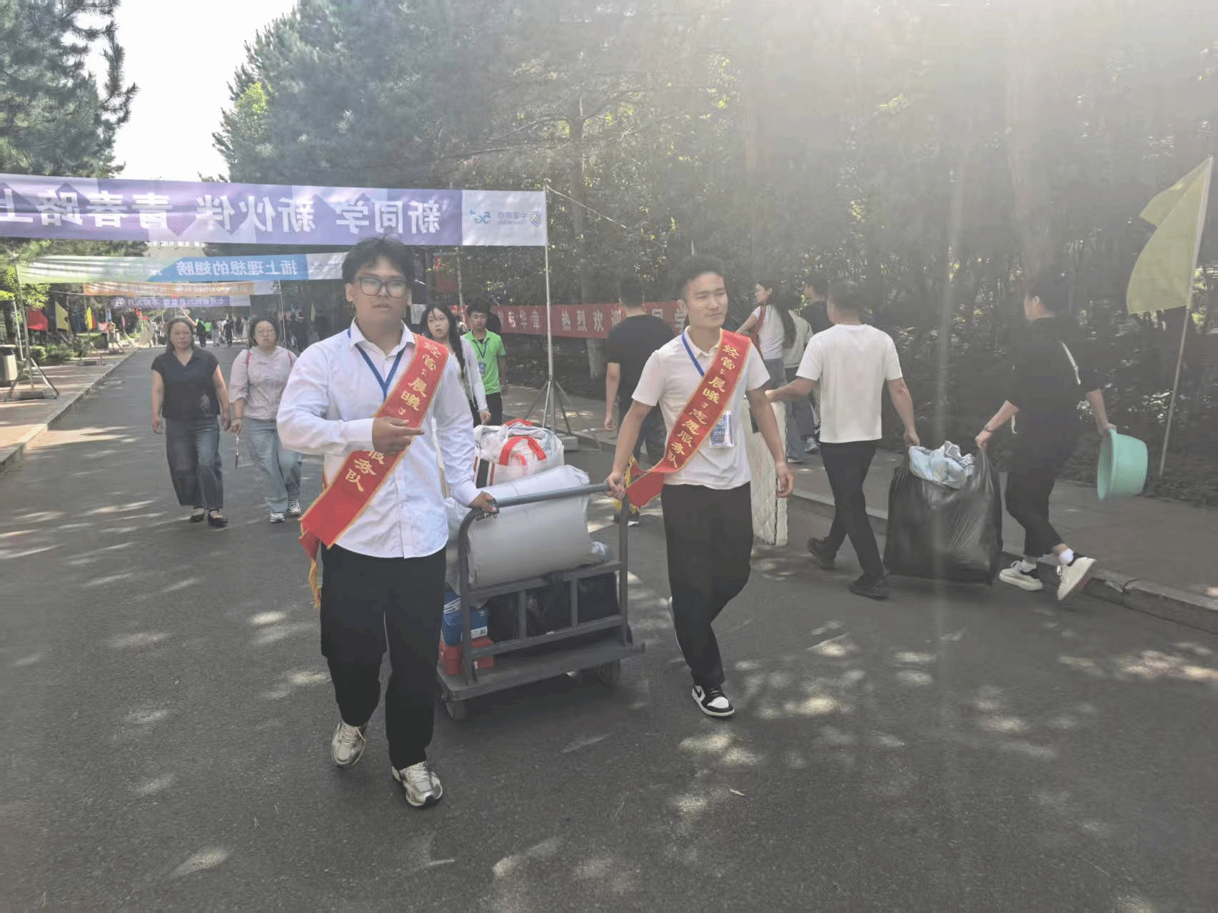 9 月 3 日清晨 7 点,学院的志愿者们身着“晨曦”大学生志愿服务队绶带,已在新生报到处就位。校门口,志愿者们主动接过新生的行李,热情地说 “同学这边走,我带您去报到”;报到处前,志愿者们协助新生核对信息;通往宿舍的路上,志愿者们一边帮新生拎着行李,一边介绍着校园里的超市、食堂位置。