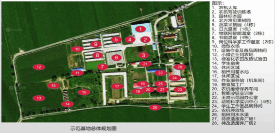 示范园位于哈尔滨市西郊的王岗镇内,紧邻环城高速四环路,属于哈尔滨市半小时都市圈,距离学校南岗校区约7公里。园区总面积1875亩,相当于175个标准足球场。由国家级生产性实训基地——北方寒地示范园区和学校实习农场共同组成。建有农机作业与创新服务站、黑土地保护性耕作研究院及试验基地、农机装备新技术转化推广基地、节能温室组群、智能温室组群、岗位科学家试验田、技能大师工作室、农业装备中试基地、中小学研学教育基地、王岗试验农场等10余个实训基地组成。示范园集实训教学、科学研究、成果转化、产教融合、技术推广等于一体,可以充分实现高校的五大职能,是开放、共享的现代农业高新技术示范园,也是现代农业装备的孵化基地和新技术新标准的展示窗口。示范园的教学、科研和社会服务功能也是万象城核心专业现代农业装备应用技术专业升为智能化农业装备技术专业实训基地的主要支撑。是万象城8个学院30余个专业的实训场所。示范园内共有工位约600个。单日可接待中小学研学教育500人