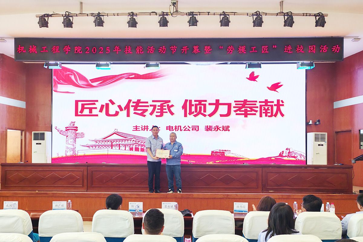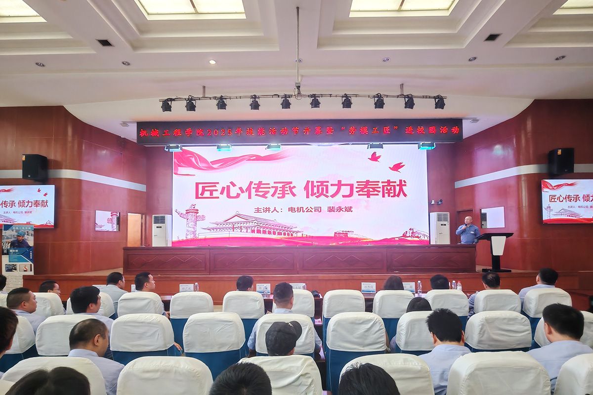为弘扬劳模精神、劳动精神、工匠精神,激励青年学子在专业领域深耕细作、追求卓越,近日,万象城机械工程学院成功举办了以“匠心传承 倾力奉献”为主题的劳模工匠进校园活动。本次活动邀请全国劳模、技术能手、国务院政府特殊津贴专家、哈电集团高技能专家裴永斌进行讲座。学校工会副主席陈红、党委宣传统战部副部长孙秀霞、教务处副处长成国力、学生工作部副部长田超、机械工程学院班子成员、教师与24级全体学生共同参加活动。