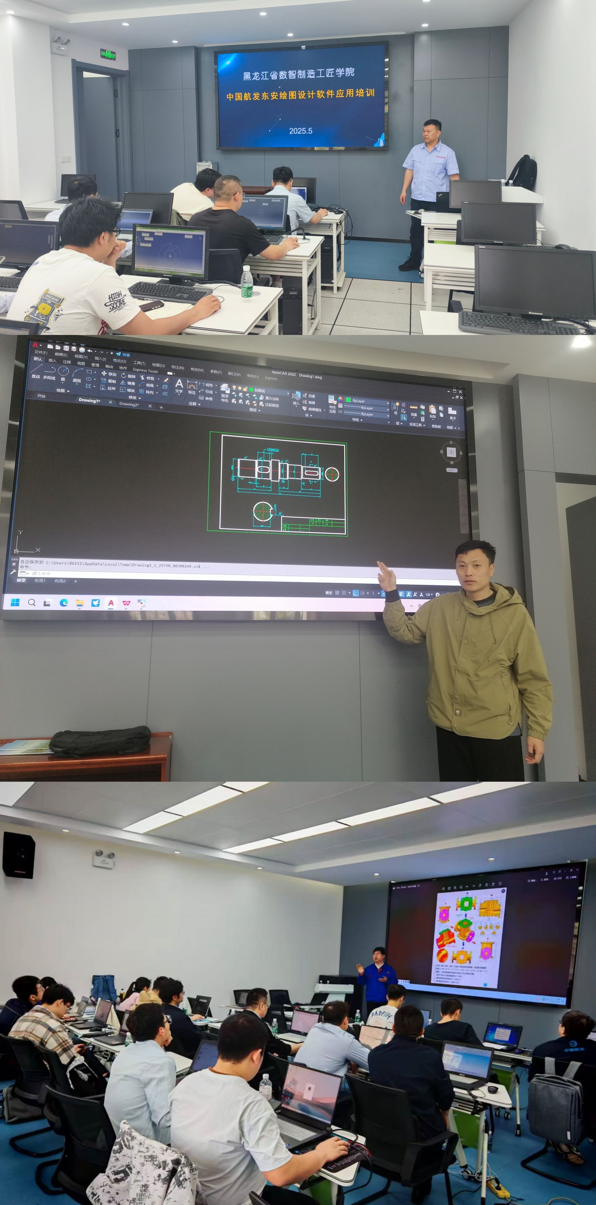 服务期间,教师团队依托黑龙江省数智制造工匠学院的资源优势,引入虚拟仿真、参数化设计等前沿技术,指导学员完成航空发动机零部件建模、复杂曲面优化等实战任务。中国航发东安公司人力资源部负责人表示此次技术服务有效解决了员工在高端CAD/CAM软件应用中的技术瓶颈,为智能工厂建设提供了人才支撑。
