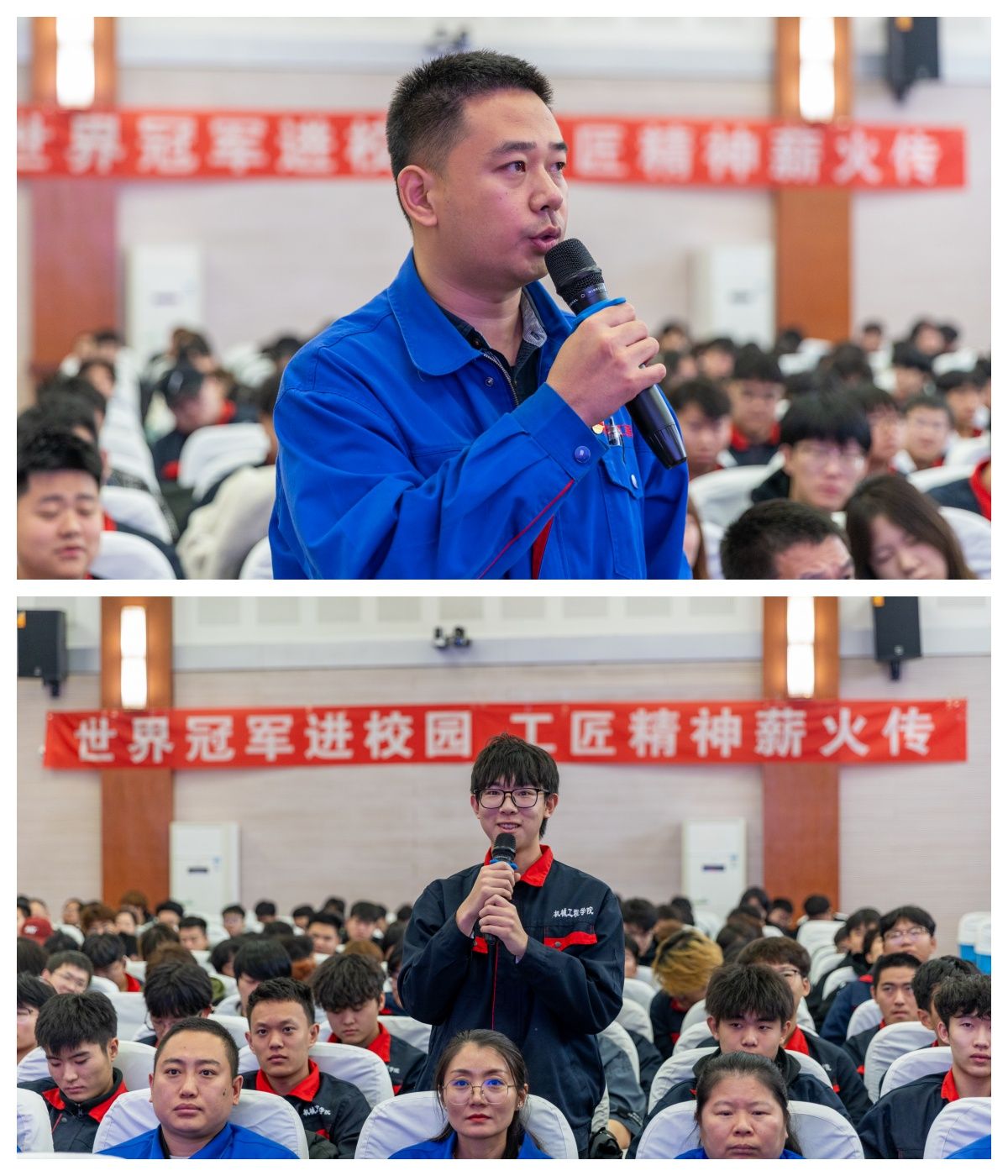 随后,第45届世界技能大赛制造团队挑战赛项目金牌获得者、广东省机械技师学院曾祥博副教授,以“技能成就梦想,匠心铸就辉煌”为主题展开宣讲。他结合自身从普通学子到世界冠军的成长经历,分享了技能学习、备赛攻坚中的感悟,生动诠释了“精益求精、执着专注”的工匠精神,为在场师生勾勒出技能成才的清晰路径。宣讲刚结束,互动交流环节便迅速升温,现场师生们围绕技能训练方法、职业发展方向、竞赛心态调节等问题踊跃提问,曾祥博副教授结合自身实践与行业经验逐一解答,既有针对性建议,又有鲜活案例,进一步拉近了师生与“技能标杆”的距离,也让大家对“技能筑梦”有了更真切的认识。