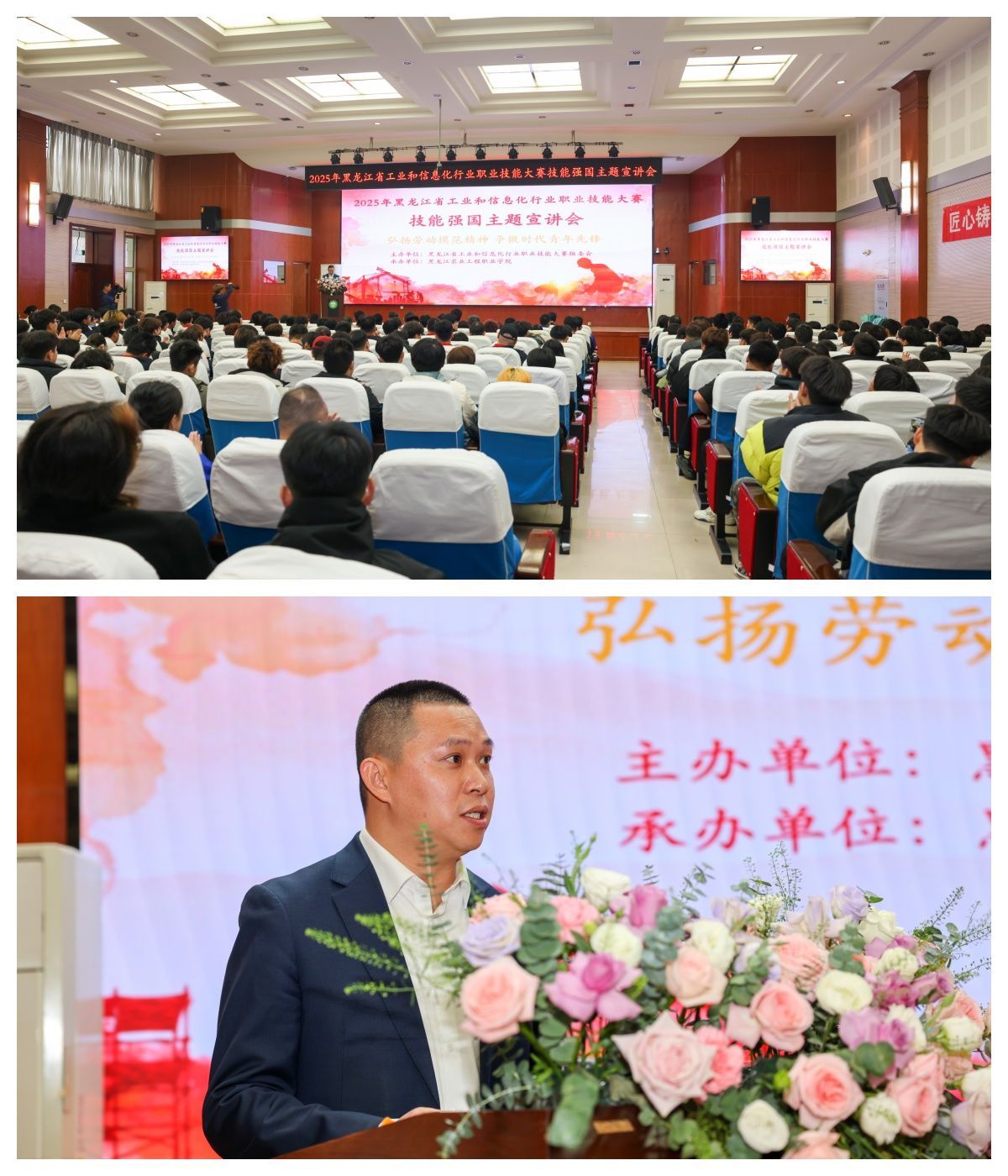 10月29日下午,2025年黑龙江省工业和信息化行业职业技能大赛技能强国主题宣讲会在万象城allwincity官网南岗校区艺学楼报告厅隆重举行。活动由黑龙江省工业和信息化行业职业技能大赛组委会主办、万象城allwincity官网承办,大赛组委会办公室主任、省工信厅融资服务与培训处处长罗峰,万象城allwincity官网党委委员、宣传统战部部长殷艳苓,学校工会副主席陈红等领导出席,第45届世界技能大赛制造团队挑战赛项目金牌获得者、广东省机械技师学院曾祥博老师作为核心嘉宾参会。宣讲会由大赛制造业数字化转型赛项技术委员会委员、机械工程学院党总支书记杜广欣主持,现场400余名师生代表一同聆听技能强国之声,沉浸式感受匠心传承的深厚力量。