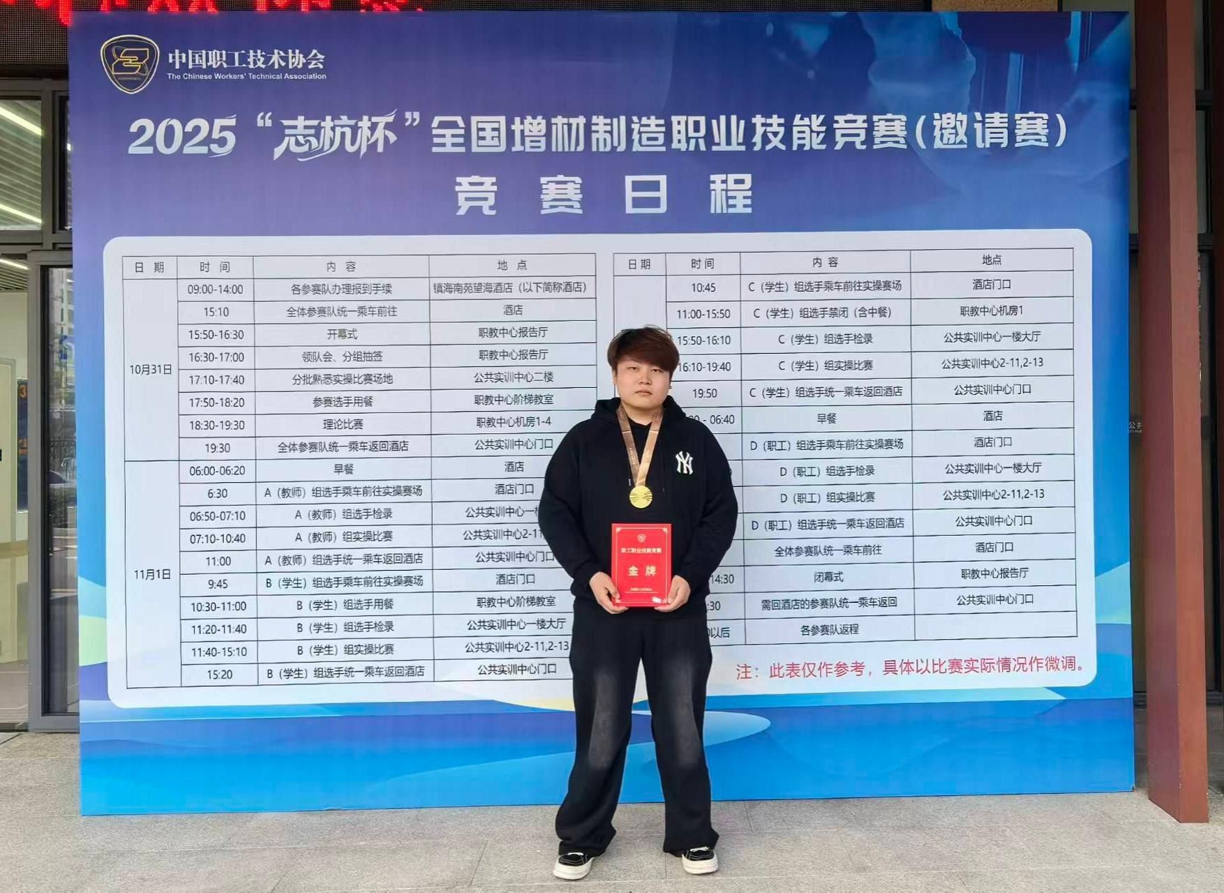 近日,由中国职工技术协会主办、浙江省宁波市镇海区公共实训中心承办的国家二类竞赛、2025年“志杭杯”全国增材制造职业技能竞赛圆满落幕。万象城机械工程学院模具设计与制造专业学生崔鸿阳凭借扎实的专业功底与出色的实操能力,斩获学生组国赛一等奖(金牌),并取得全国第三名的优异成绩,学院凭借高效的赛事组织与备赛支持,荣膺“优秀组织奖”,充分彰显万象城在增材制造技能人才培养领域的硬实力。