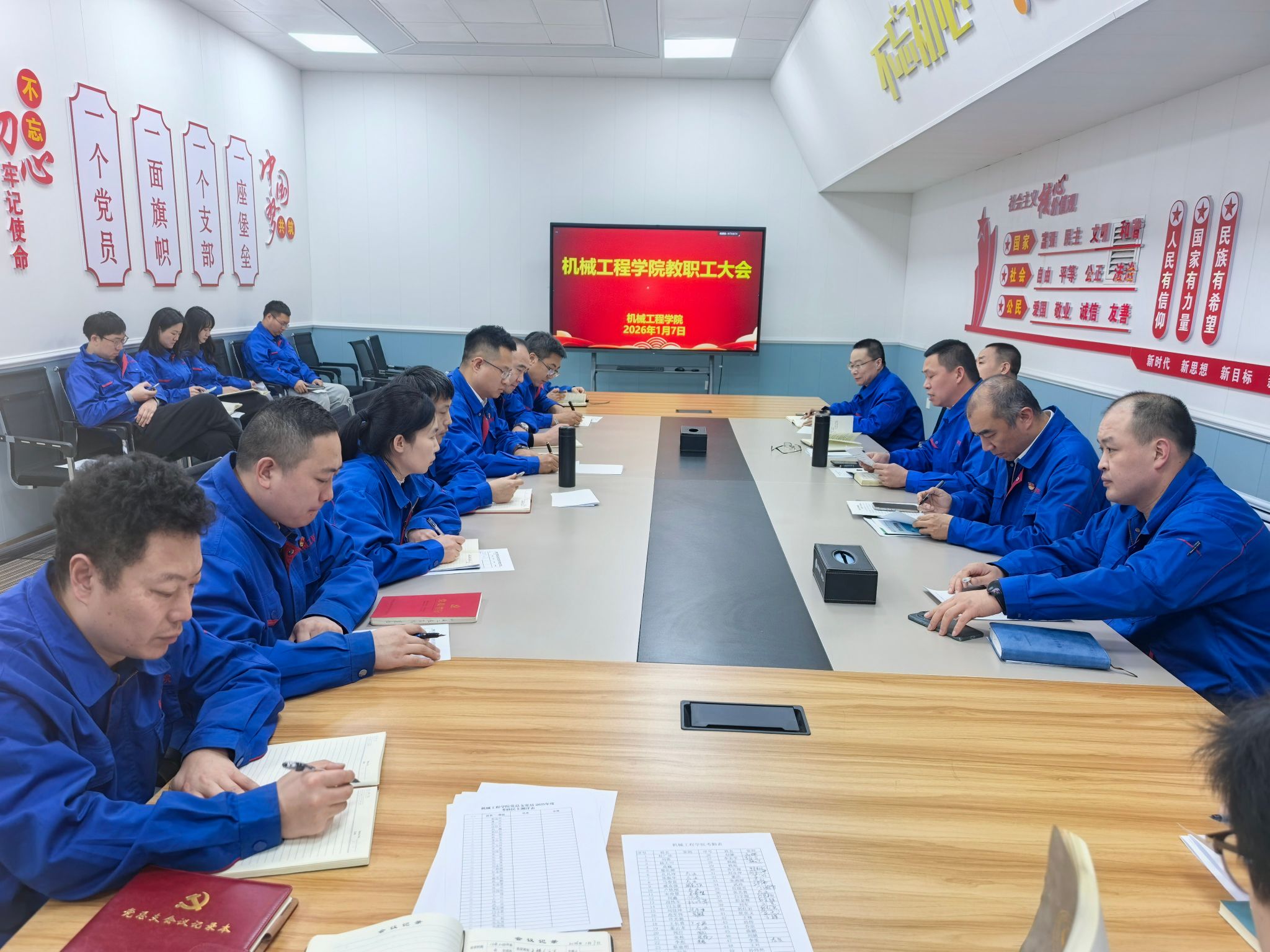 为深入学习贯彻学校2025年工作总结会议精神,全面梳理年末各项工作,扎实部署寒假期间重点任务,1月7日,机械工程学院召开全体教职工大会。会议由学院党总支书记杜广欣主持,全体教师参加会议。