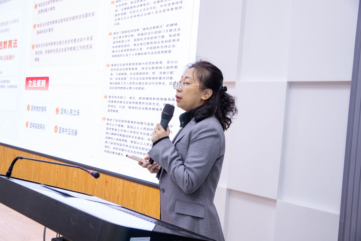 活动尾声,马克思主义学院院长王淑桢作总结发言。她充分肯定本次活动的教学设计与实践意义,并从学生个人成长与时代责任维度,对同学们寄予殷切期望,勉励大家自觉做社会主义法治的忠实崇尚者、自觉遵守者、坚定捍卫者。