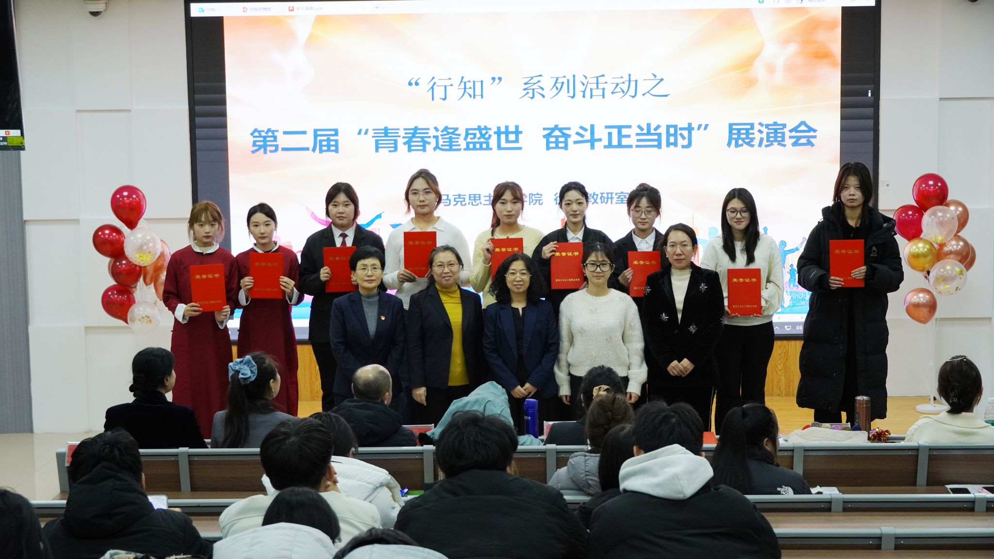 为深化《思想道德与法治》课教学改革,推动理论教学与实践育人深度融合,12月10日下午,马克思主义学院德法教研室成功举办“行知”系列活动之第二届“青春逢盛世 奋斗正当时”实践教学展演会。马克思主义学院党总支书记王伟、副院长姜春兰、周莹及德法教研室全体教师出席活动,与青年学子共同见证了一场融思想性、艺术性与教育性于一体的青春盛典。