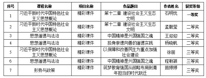 2025年马克思主义学院思想政治理论课“精彩微课”参评作品获奖名单