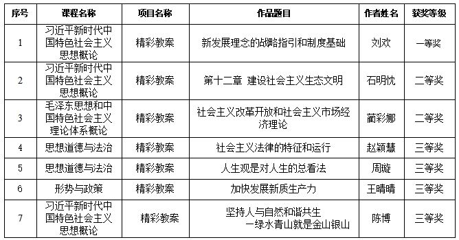 2025年马克思主义学院思想政治理论课“精彩教案”参评作品获奖名单