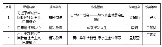 精彩微课(共3项):一等奖1项、二等奖1项、三等奖1项。