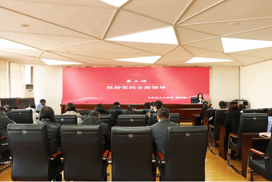 11月20日上午,我院组织人事部、宣传统战部、办公室、工会四部门持续开展习近平新时代中国特色社会主义思想学习班学习活动,马克思主义学院教师蔺彩娜讲授学习班第五讲——坚持党的全面领导。