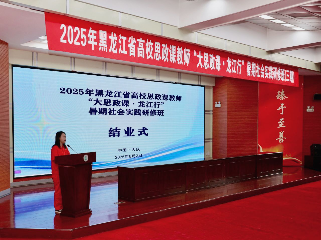 7月29日—8月2日,中国化教研室武冰老师参加了由大庆师范学院承办的第三期实践研修培训活动。研修期间认真聆听大国工匠的动人事迹,围绕大庆油田发现、踏着铁人脚步走、大庆油田科技创新、生态大庆、铸牢中华民族共同体意识等主题,实地考察了铁人一口井、铁人王进喜纪念馆、大庆石油科技馆、龙江塞罕坝精神传承地等。武老师作为学员代表之一在结业式上发言,她表示一定要讲好大庆精神(铁人精神)内蕴的鲜活故事,讲好红色基因在新时代的传承,让红色精神在教育事业中薪火相传、熠熠生辉。