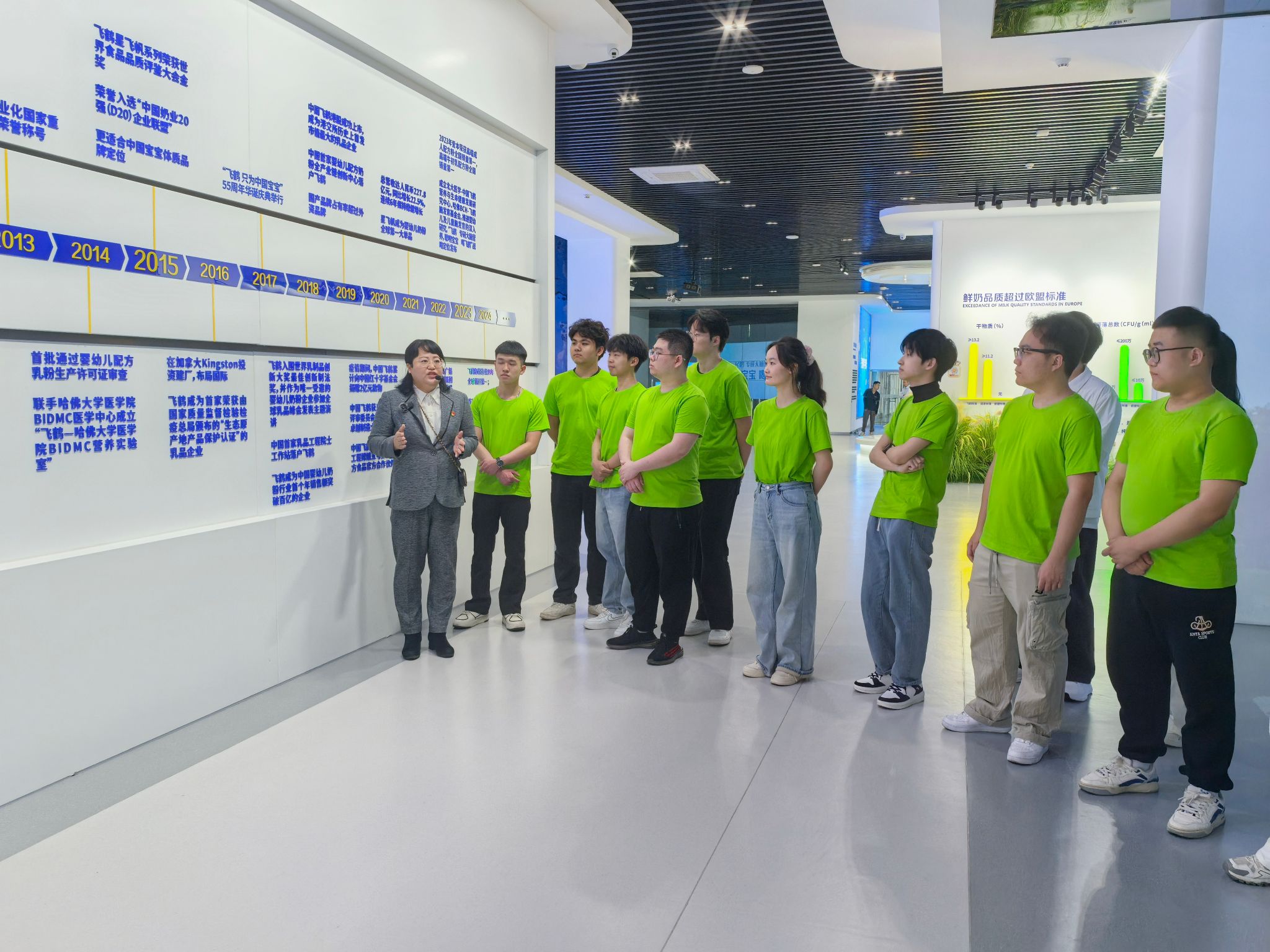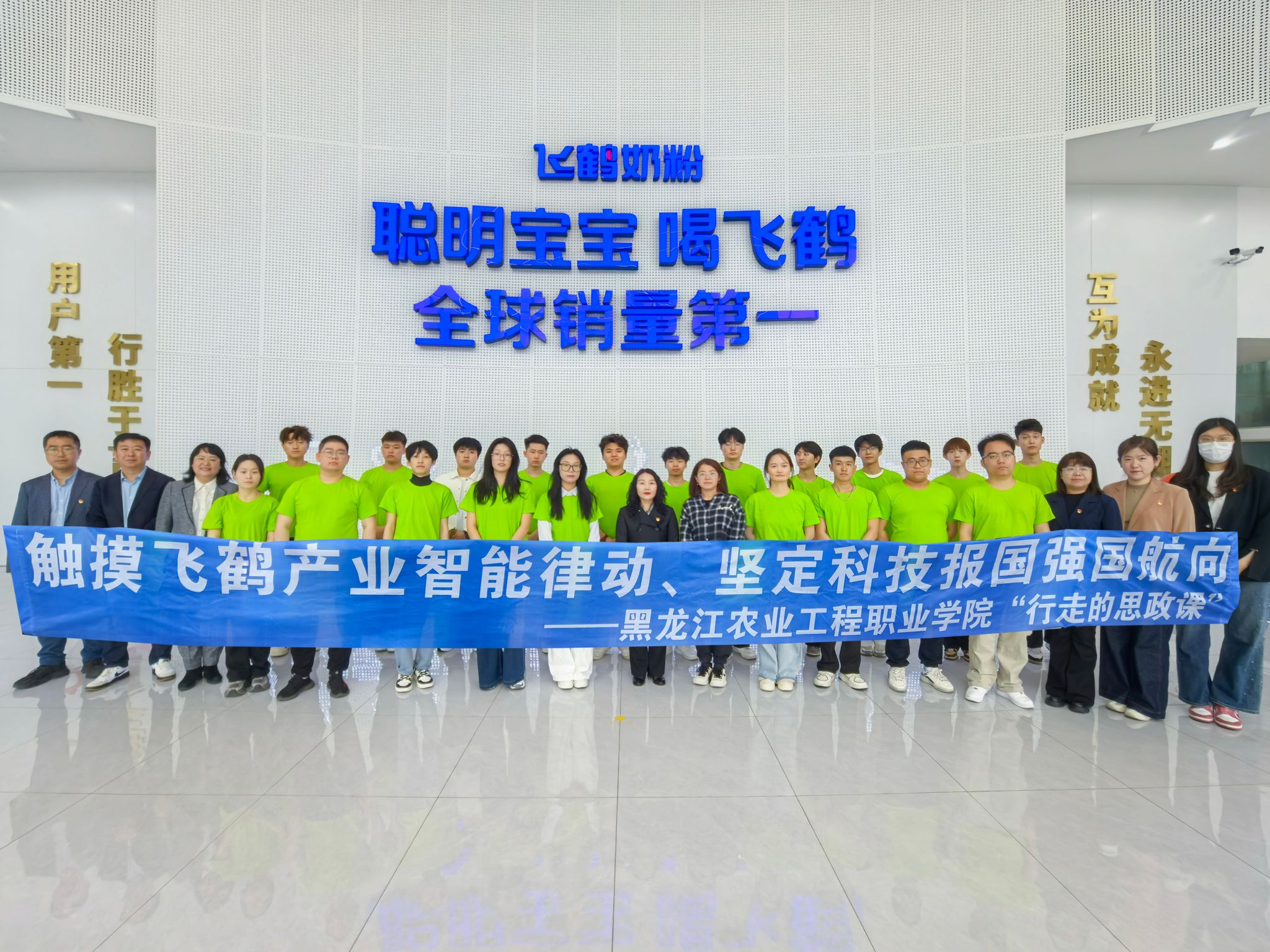 通过了解企业创新发展成就、观看牧场实时监控、参观透明车间,同学们全面了解了飞鹤乳业从牧场到工厂,从科研到生产,一罐好奶粉的背后的故事。这是广大农民群众、产业工人、科研人员共同书写的中国式现代化微观叙事;是青年学子扎根民族企业,科技兴农助农的鲜活注脚;是职教学子匠心求索、学有所用的广阔舞台。