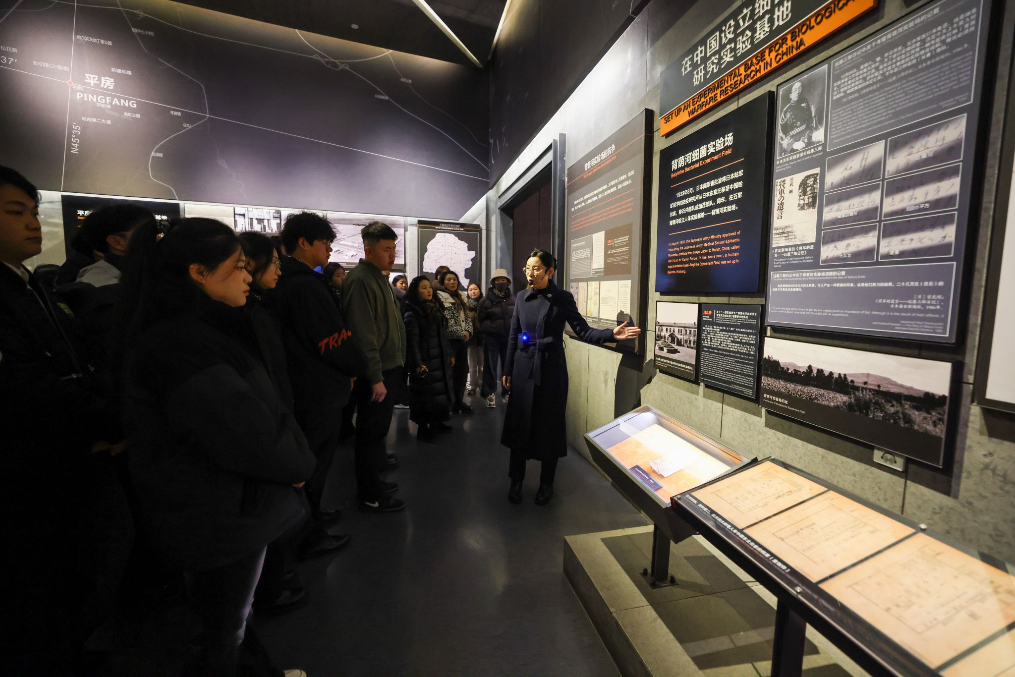 随后,学生在专业讲解员带领下深入参观展陈,一件件承载民族伤痛的实物、一份份确凿详实的数据档案、一幕幕触目惊心的影像,系统还原了侵华日军第七三一部队实施细菌战、人体实验等反人类罪行的完整史实。同学们在实证面前深刻体悟到“历史不容否认、真相不容篡改”的真理力量,更直观理解了习近平总书记强调的“铭记历史才能开创未来”所蕴含的深刻内涵。