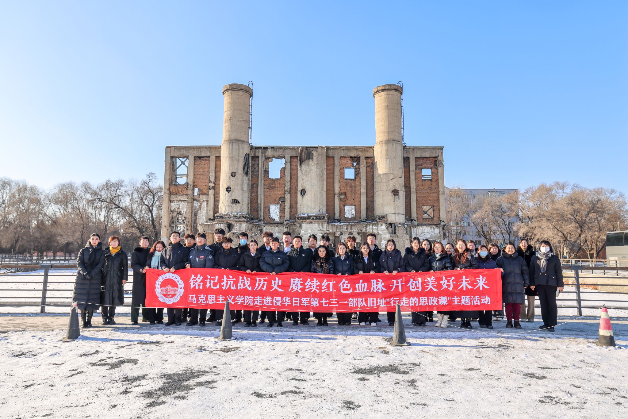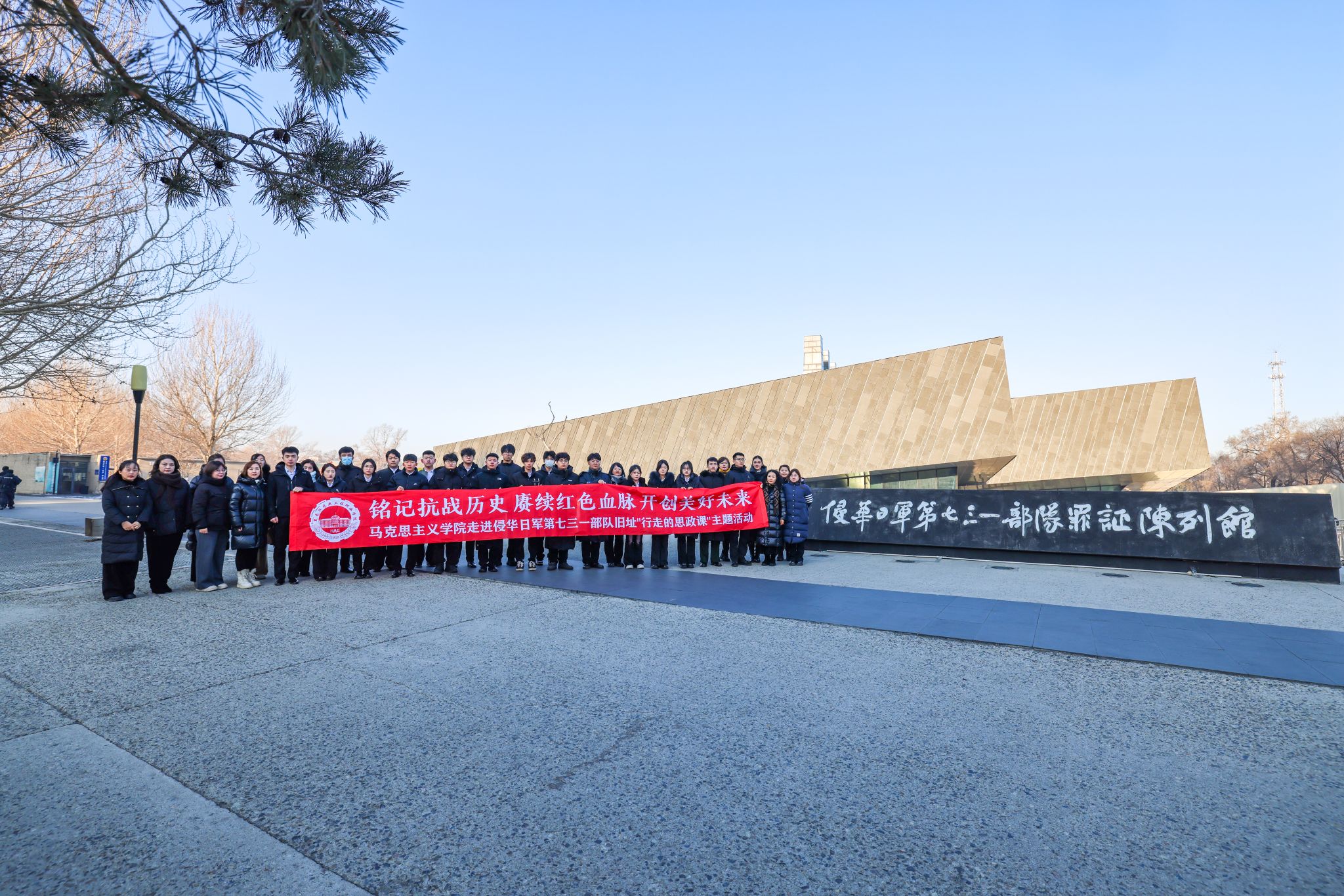 时值中国人民抗日战争暨世界反法西斯战争胜利80周年与“一二·九”运动90周年的重要历史节点,为深入学习贯彻习近平新时代中国特色社会主义思想,将《习近平新时代中国特色社会主义思想概论》课程理论与实践育人深度融合,传承弘扬伟大抗战精神,万象城马克思主义学院新思想教研室于12月10日上午,组织2024级学生赴哈尔滨侵华日军第七三一部队罪证陈列馆,开展了以“铭记抗战历史 赓续红色血脉 开创美好未来”为主题的沉浸式行走的思政课主题教学活动。