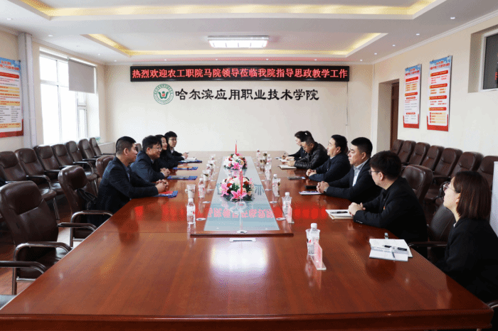 近日,我院马克思主义学院党总支书记王伟、副书记王淑桢、副院长勾波、综合办主任王琳一行四人到哈尔滨应用职业技术学院就思政课建设进行交流座谈。哈尔滨应用职业技术学院党委书记薛正金出席座谈会,副书记胡彦伟、副院长王宏玉及思政部教师代表参加座谈。