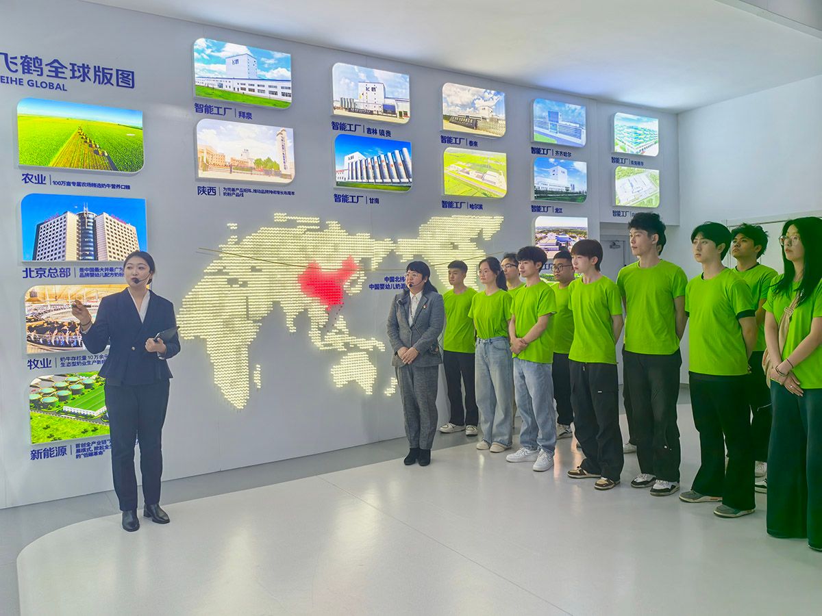 通过了解企业创新发展成就、观看牧场实时监控、参观透明车间,同学们全面了解了飞鹤乳业从牧场到工厂,从科研到生产,一罐好奶粉的背后的故事。这是广大农民群众、产业工人、科研人员共同书写的中国式现代化微观叙事;是青年学子扎根民族企业,科技兴农助农的鲜活注脚;是职教学子匠心求索、学有所用的广阔舞台。