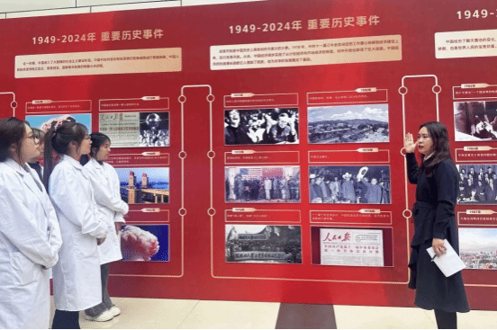 在新中国成立 75 周年历史讲解活动中,生物制药学院“一站式”学生社区特邀马克思学院的武冰老师、安义老师、杨健老师,以生动的语言、详实的史料,带领同学们回顾了新中国成立 75 年来的光辉历程。从开国大典的庄严宣告到如今的大国崛起,从一穷二白的艰难起步到世界第二大经济体的辉煌成就,同学们在名家的讲述中深刻感受到了祖国的伟大变迁和民族的奋斗精神。