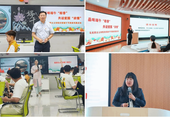 马克思主义学院党总支书记王伟、副书记王淑桢为参加活动的师生送上节日祝福和殷切希望:我们过端午节,要更好感悟传统节日的深刻底蕴,要唤起传统节日的文化记忆,赋予端午文化新的时代内涵,使其更丰富、更立体、更有辨识度,让端午文化与新时代和谐共鸣。希望同学们从端午文化中挖掘爱国主义的时代价值,能够为赓续中华文脉注入固本培元、立根铸魂的思想力量。