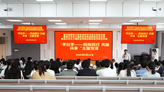 为深入学习贯彻习近平新时代中国特色社会主义思想,全面贯彻落实党的二十大精神,按照省委、省委教育工委关于深入开展学习贯彻习近平新时代中国特色社会主义思想主题教育的统一部署,根据学院党委关于深入开展学习贯彻习近平新时代中国特色社会主义思想主题教育的实施方案相关要求,推进主题教育走深、走实、走心,切实提高大思政视野下思政课程和课程思政育人水平,5月24日下午,我院思政联合党支部、动物科学技术分院党支部联合哈尔滨师范大学生命科学与技术学院党委在我院开展主题党日活动。哈尔滨师范大学生命科学与技术学院党委书记张玉山、我院动物科学技术分院党支部书记耿明杰,以及所属各党支部支委、党员代表及哈尔滨师范大学生命科学与技术学院研究生学生党员代表、我院专升本进入该院学习的3名学生代表参加活动。活动由思政联合党支部书记王伟主持。