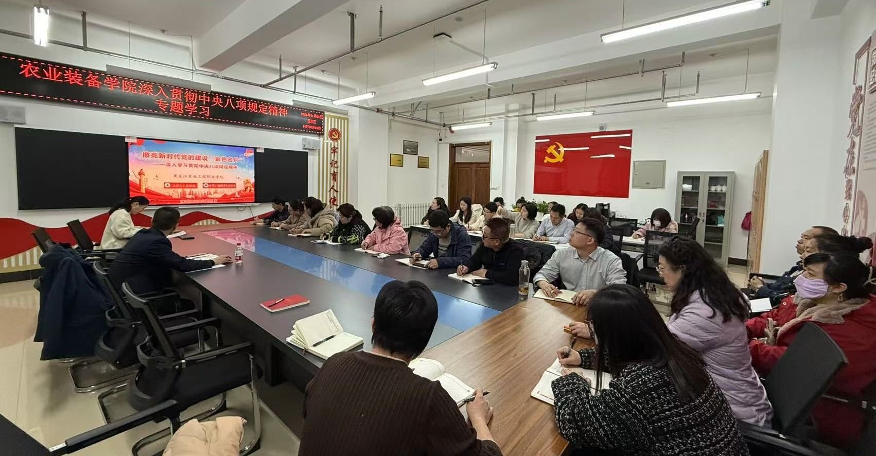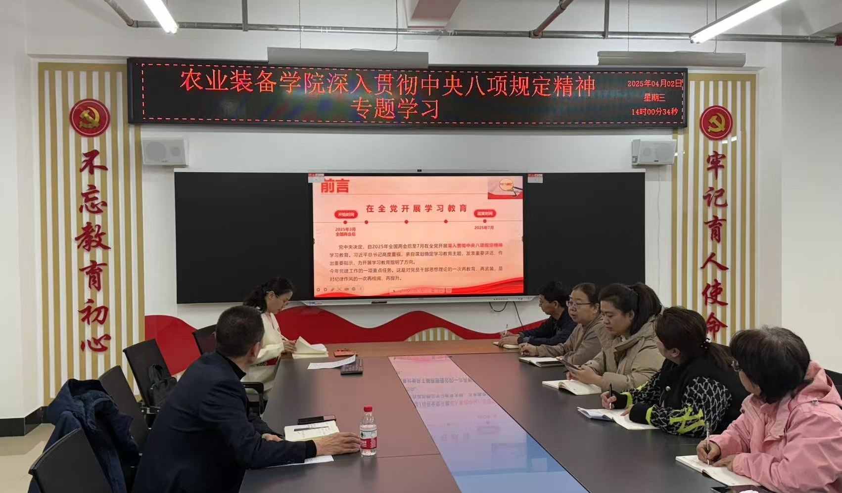 4月2日,农业装备学院党总支精心组织全体教职工,开展了一场主题为中央八项规定及其实施细则的深入学习活动,旨在全面提升教职工的纪律意识,扎实推动学院作风建设迈向新高度。