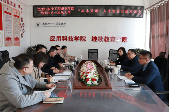 随后,黑龙江八一农垦大学应用科技学院高波书记、宫占元院长以及工程学院马永财院长和王福成教学副院长等领导与我院杜长征书记一行进行了会谈。会议由黑龙江八一农垦大学应用科技学院副院长丁国超主持。会谈中,应用科技学院高波书记对两院之间的合作互动给予了充分肯定,并表示后续将对加强两校深度合作给予大力支持;应用科技学院宫占元院长就师资互培互聘、实训资源共建共享等机制与杜书记一行进行了磋商和探讨;工程学院马院长表示,作为高端智能农机装备产教融合共同体的主要牵头高校,工程学院将与我院深度开展科研等领域合作,为共同体建设、科技成果转化等贡献八一农大智慧和方案;随后,八一农大应用科技学院刘芳芳副书记和工程学院王福成副院长分别就高本贯通学生管理情况和学习情况与我院孙雪梅和曹克刚两位副院长进行了交流。