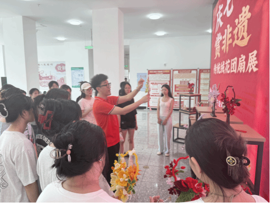 举办此次传统绒花团扇展,绝非一次简单的展览活动,它承载着深远的意义和价值。这不仅是对非遗文化的有力传承与弘扬,更是以文化育人的重要实践。通过将非遗文化与庆祝建党节日紧密结合,师生们在欣赏和体验传统手工艺的过程中,仿佛穿越时空,与历史对话,与文化共鸣。他们在感受非遗文化魅力的同时,也深刻领悟到中华优秀传统文化的博大精深和源远流长,从而增强了文化自信。
