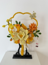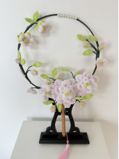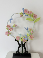 此次展出的团扇,堪称艺术与技艺的完美结晶。在老师的指导下,同学们将绒花技艺巧妙地融入团扇之中,扇面上那一朵朵栩栩如生的绒花,宛如被赋予了生命。它们与团扇的古典造型相得益彰,共同勾勒出一幅幅充满诗意与韵味的画面,每一把团扇都凝聚着非遗传承人的智慧与心血,淋漓尽致地展现出传统手工艺的独特魅力。