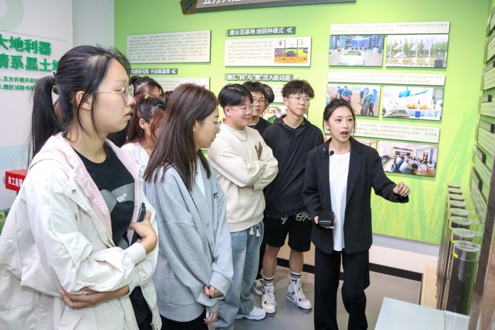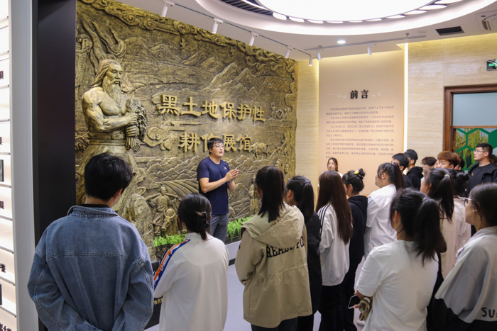 分院组织新生12个班级和“3+2中高职贯通”的学生参观了产教融合大楼一楼的各实训室。在黑土地保护性耕作展馆,老师向新生介绍了中华农耕简史、沃土龙江和龙江大农耕的发展历程与业绩、探索现代智能农机装备的成就与发展趋势,同学们饶有兴致地体验了VR园区景点展示。通过了解和感受中华农耕文明的悠久历史和辉煌成就,同学们认识到黑土地保护的重要性,激发了“三农”情怀,更加明确了龙江农业人的责任和使命。