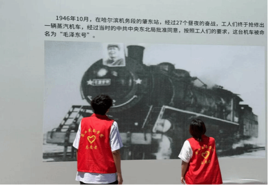 步入纪念馆展厅,一幅“毛泽东号”机车的历史图片吸引了团队的目光。作为中国铁路史上的红色符号,“毛泽东号”承载着“勇当先锋、敢打头阵”的奋斗精神,而这种精神也深深融入了肇东的发展历程——从建国初期的农业生产恢复,到改革开放后的工业崛起,肇东人民始终以拼搏姿态书写着地方发展篇章。