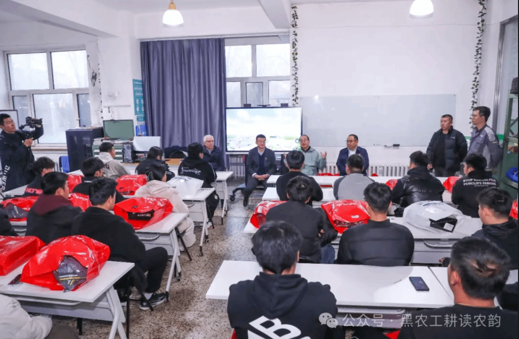 随后,学院田培育副院长从国家职业教育宏观政策调控、黑龙江省产业需求、学院专业建设等方面谈了学院未来的发展规划,他指出,学院未来将继续深化产教融合,在农业领域,以现代农业装备应用技术专业为核心,不断深化校企合作,加强与企业在人才培养、社会服务、技术创新等方面的互动。