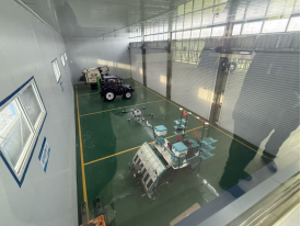 座谈结束后,在孙江科长的陪同下,调研团队先后实地参观了高端智能农机实验检测基地、智能育秧基地等核心场所。现场观摩了拖拉机、插秧机等农机具的动力性能、作业精度、安全性等多维度检测流程。在智能育秧基地,调研团队近距离考察了农场集成应用的种子处理生态化、芽种生产高效化、育秧工厂化等新技术。