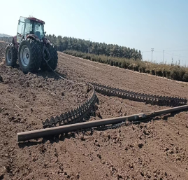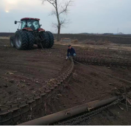 王洪刚参与设计制造的整地机械耢子 整地机械耢子在进行作业展示