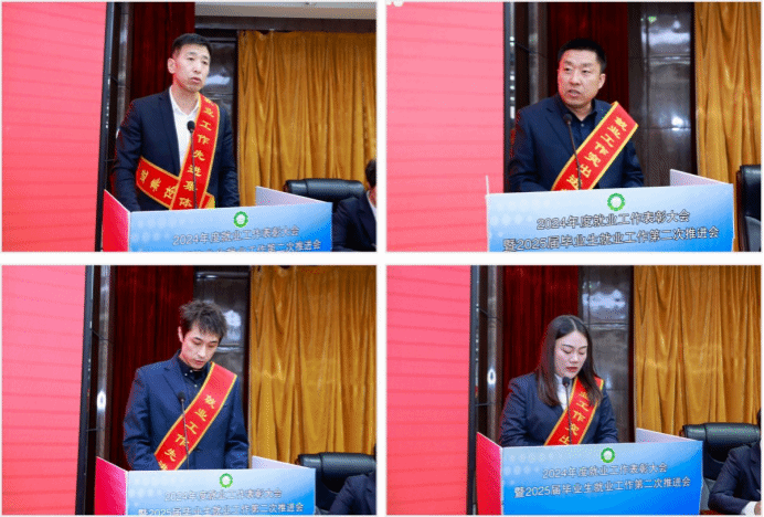 会上,学校党委副书记赵云鹏、李桂华,纪委书记田海君分别宣读了获得2024年度就业工作先进集体、突出进步集体、先进个人和突出进步个人名单。党委书记焦光纯、校长张永强等领导为受到表彰的集体和个人颁奖。