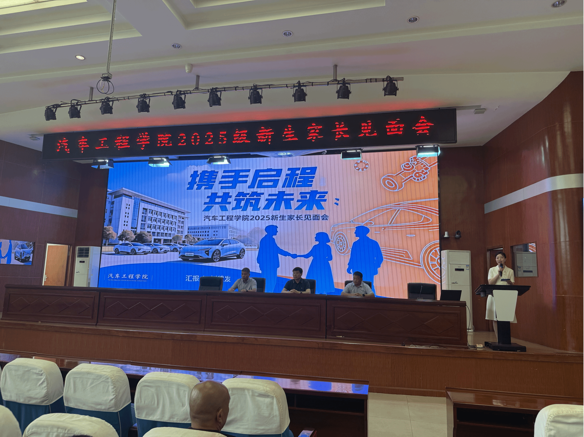 金秋送爽,丹桂飘香。为帮助2025级新生家长深入了解学校办学特色、学院专业优势及人才培养规划,搭建家校沟通桥梁,9月3日下午,汽车工程学院在艺学楼报告厅隆重举办2025级新生家长见面会。学院领导对此次活动高度重视,汽车工程学院党总支书记侯彦明、院长刘德发、教学副院长于翔甫出席会议,2025级新生家长及学院部分教师代表参加。