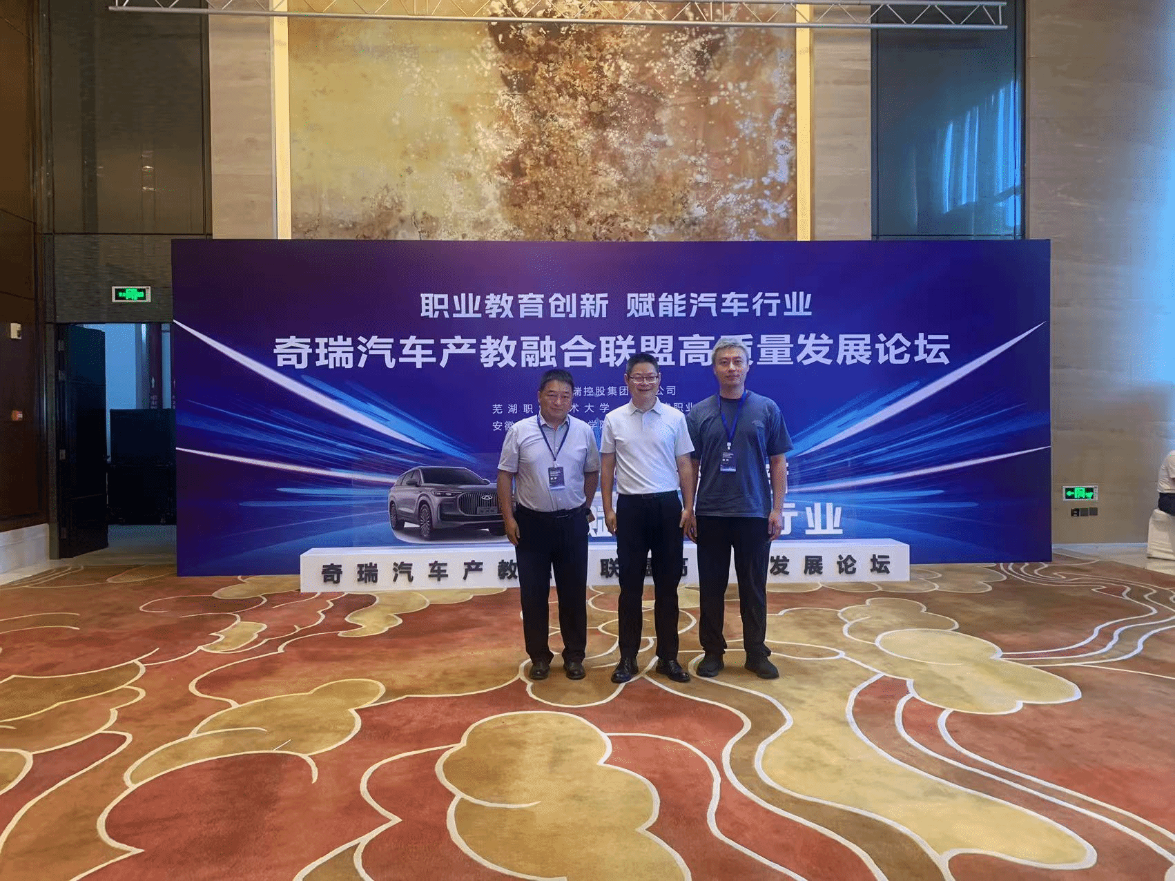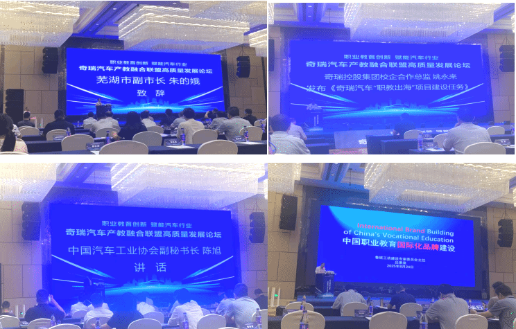 8.22-8.24日,汽车工程学院院长刘德发、新能源汽车专业带头人黄湘镇一行赴安徽芜湖参加“奇瑞汽车产教融合联盟高质量发展论坛(2025)”,并作为主要成员单位出席奇瑞集团职教出海启动仪式暨项目发布大会。